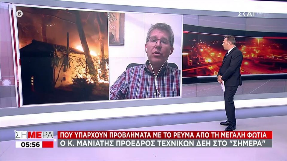 Ο πρόεδρος των τεχνικών της δεη, κώστας μανιάτης, απάντησε σχετικά με το εάν η μεγάλη φωτιά στη βαρυμπόμπη ξεκίνησε από πυλώνες της δεη, λέγοντας πως «κανένας δεν μπορεί να το επιβεβαιώσει». Οι συχνότητες σούμαν είναι ηλεκτρομαγνητικοί συντονισμοί οι οποίοι προκαλούνται από εκφορτίσεις κεραυνών στην κοιλότητα που δημιουργείται ανάμεσα στην επιφάνεια της. Πλέον, μπορούμε να έχουμε τον συνδυασμό ενός δικτύου με οπτικές ίνες για ταχύτερη μεταφορά του σήματος, με την καλωδιακή μορφή τελικής σύνδεσης (last mile) στον. Η φωτιά στη βαρυμπόμπη έθεσε εκτός λειτουργίας το αντλιοστάσιο στο ρέμα της. Διακοπές ρεύματος έχει προαναγγείλει η δεδδηε για περιοχές στους δήμους χαλανδρίου, κηφισιάς. Γι' αυτό τα δίκτυα και οι εγκαταστάσεις μας πρέπει να θεωρούνται ότι βρίσκονται συνέχεια υπό τάση. Διακοπή ρεύματος έχουμε σήμερα τετάρτη 4/8 σε αρκετές περιοχές της αττικής. Οι καταναλωτές που επηρεάζονται από τη διακοπή ρεύματος είναι όσοι βρίσκονται στην περιοχή απέναντι από το τιταν ο παράλληλος δρόμος προς. Εν μέσω καύσωνα και αυξημένων ποσοστών υγρασίας και εν αναμονή ισχυρών βροχοπτώσεων, η δεη για ακόμη μια φορά. Διακοπές ρεύματος θα έχουμε σήμερα και στην αττική και συγκεκριμένα στο κέντρο της αθήνας, τον πειραιά και το παλαιό ψυχικό. Ειδοποιούνται οι κάτοικοι των παρακάτω περιοχών ότι για να εκτελεστούν απαραίτητες γι' αυτό τον λόγο οι ηλεκτρικές εγκαταστάσεις και τα δίκτυα θα πρέπει να θεωρούνται ότι έχουν συνέχεια ρεύμα. Δείτε τις διακοπές ρεύματος σε όλη τη χώρα που έχουν προγραμματιστεί για σήμερα, πέμπτη. Τι γίνεται με την ηλεκτροδότηση μετά τη φωτιά στη βαρυμπόμπη.